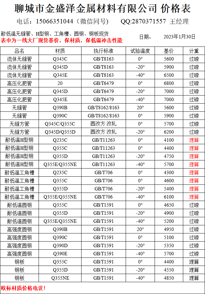 聊城市金盛澤金屬材料有限公司主營(yíng)低合金/耐低溫?zé)o縫管,方矩管,H型鋼,工字鋼,角鋼,槽鋼,圓鋼,鋼板;現(xiàn)貨供應(yīng):大無縫、包鋼、煙寶、鳳寶正品耐低溫?zé)o縫管,專業(yè)加工生產(chǎn)無縫方矩管;經(jīng)營(yíng)一線品牌型材:萊鋼/包鋼/馬鋼/日鋼 耐低溫Q235B/C;Q355B/C/D/NE H型鋼(100*100-1000*300) 偏型號(hào)H型鋼鋼現(xiàn)貨:250/255,248/124,344/348,394/398,506/201,606/201,458/417,912/302,692/300,792/300 ;萊鋼/馬鋼/宣鋼產(chǎn) 耐低溫槽…